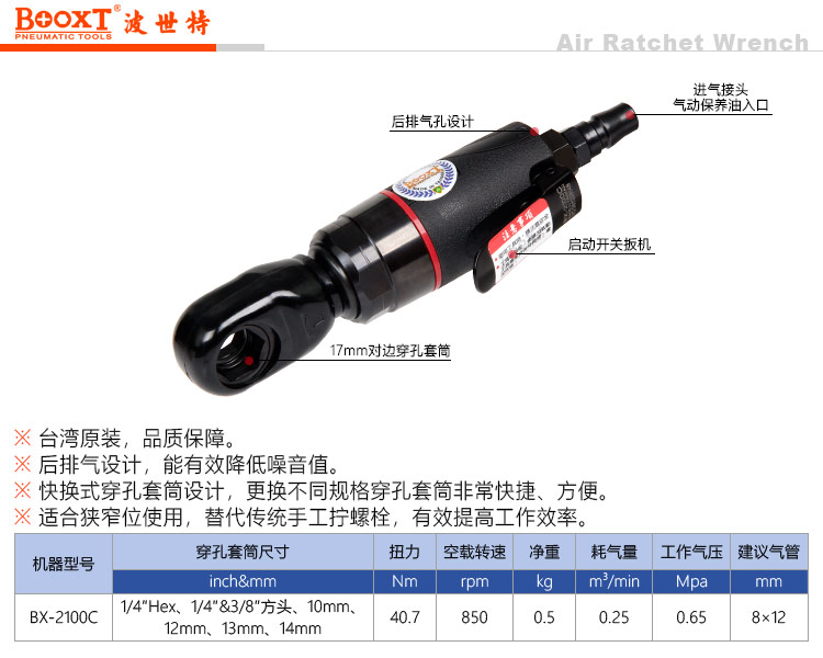 東莞市強(qiáng)勁五金工具有限公司提供臺(tái)灣BOOXT波世特品牌氣動(dòng)工具,氣動(dòng)穿孔棘輪扳手BX-2100C廠家直銷,首件享特價(jià)。咨詢熱線:4008301980