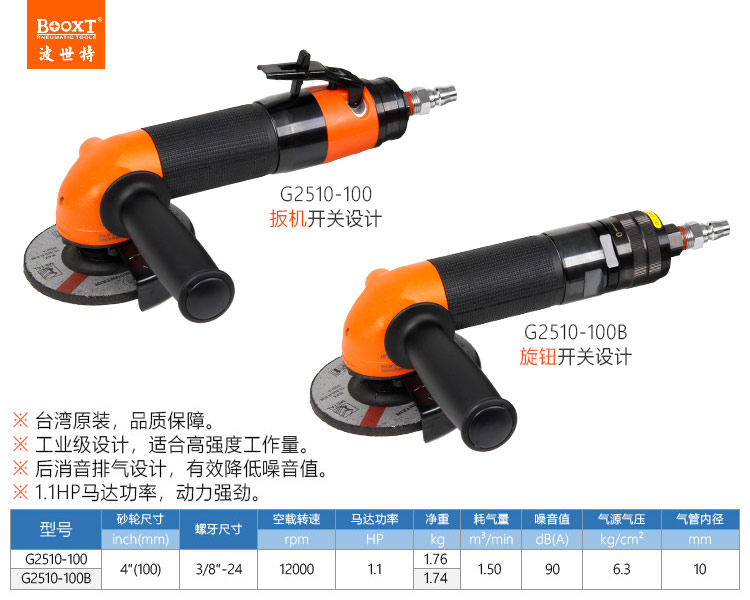東莞市強勁五金工具有限公司提供臺灣BOOXT波世特品牌氣動工具,歐洲款風動角磨機G2510-100B廠家直銷,首件享特價。咨詢熱線:4008301980