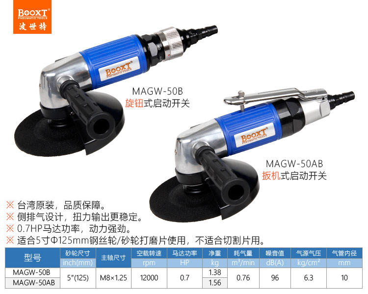東莞市強勁五金工具有限公司提供臺灣BOOXT波世特品牌氣動工具,日式風動角磨機MAGW-50AB廠家直銷,首件享特價。咨詢熱線:4008301980