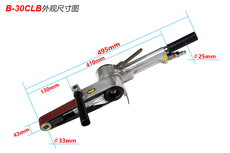 • 產(chǎn)品參數(shù): 砂帶尺寸:30*540mm; 空載轉(zhuǎn)速:12000rpm; 馬達(dá)功率:0.7hp 工具長度:495mm; 工具重量:2.25kg; 耗 氣 量:0.15m3/min; 使用工作氣壓:0.65Mpa; 推薦使用內(nèi)徑8mm氣管; 平時使用應(yīng)多加氣動油保養(yǎng). 【工業(yè)型】