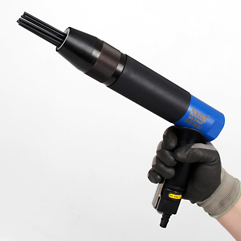 • 產(chǎn)品參數(shù): 沖擊頻率:3700bpm 活塞尺寸:23.6*77.8mm 活塞行程:11mm 除銹針尺寸:M3*180mm 除銹針數(shù)量:19pcs 耗 氣 量:0.28m3/min 全 長:325mm 凈 重:2.64kg 噪 音 值:98.5db(A) 【工業(yè)型/減震型】