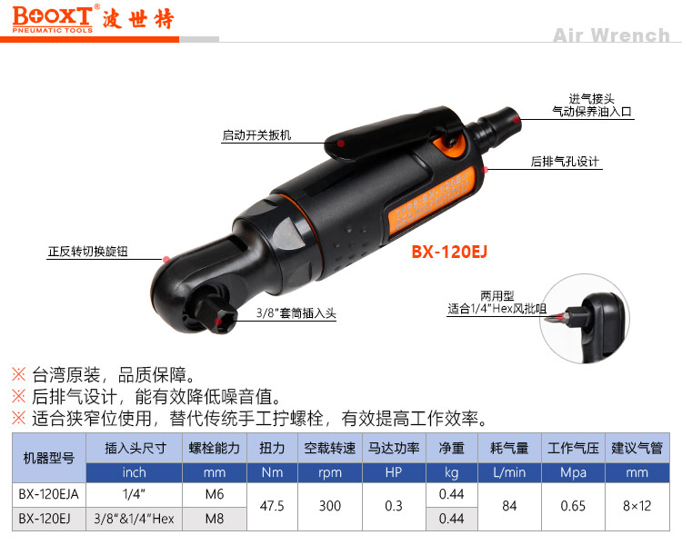 東莞市強(qiáng)勁五金工具有限公司提供臺(tái)灣BOOXT波世特品牌氣動(dòng)工具,兩用氣動(dòng)棘輪扳手BX-120EJ廠家直銷,首件享特價(jià)。咨詢熱線:4008301980