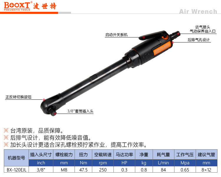 東莞市強(qiáng)勁五金工具有限公司提供臺(tái)灣BOOXT波世特品牌氣動(dòng)工具,加長(zhǎng)氣動(dòng)棘輪扳手BX-120EJL廠(chǎng)家直銷(xiāo),首件享特價(jià)。咨詢(xún)熱線(xiàn):4008301980