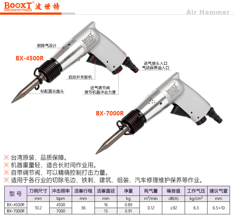 東莞市強(qiáng)勁五金工具提供臺灣BOOXT波世特品牌,迷你氣動沖擊鏟BX-4500R廠家直銷,首件享特價。咨詢熱線:4008301980