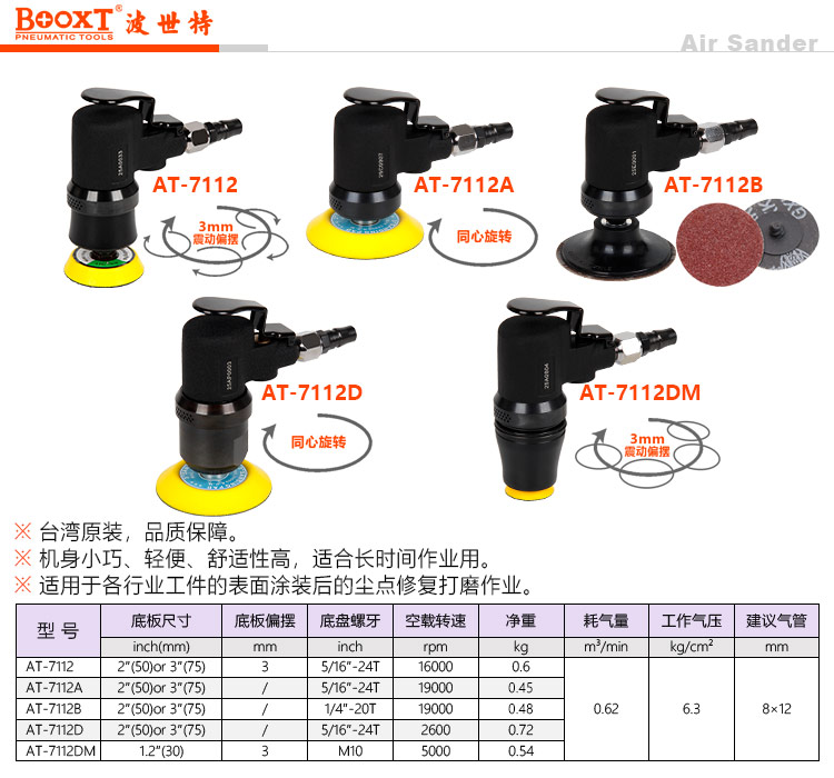 東莞強勁五金工具有限公司提供臺灣BOOXT波世特氣動工具,迷你氣動低速打磨機AT-7112D廠家直銷,首件享特價。咨詢熱線:4008301980