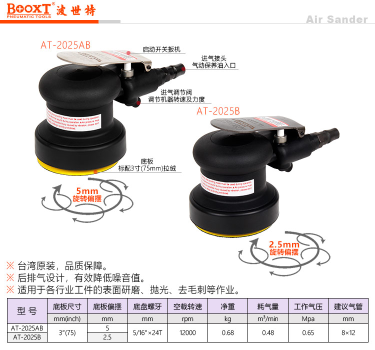 東莞強(qiáng)勁五金工具有限公司提供臺(tái)灣BOOXT波世特氣動(dòng)工具,3寸氣動(dòng)打磨機(jī)AT-2025AB,廠家直銷,首件享特價(jià)。咨詢熱線:4008301980