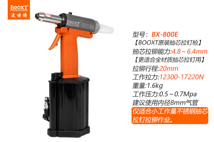東莞市強勁五金工具有限公司提供臺灣BOOXT波世特品牌氣動工具,氣動拉鉚槍BX-800E廠家直銷,首件享特價。咨詢熱線:4008301980