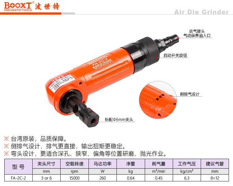 東莞市強勁五金工具有限公司提供臺灣BOOXT波世特品牌氣動工具,彎頭氣動刻磨機FA-2C-2廠家直銷,首件享特價。咨詢熱線:4008301980