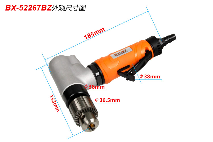 彎頭氣動鉆特點:(重力壓鑄外殼,強度更高不變形,提高耐用度)