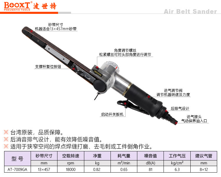 東莞市強(qiáng)勁五金工具有限公司提供臺灣BOOXT波世特品牌氣動工具,AT-7009GA圓手柄風(fēng)動砂帶機(jī)廠家直銷,首件享特價。服務(wù)熱線:4008301980