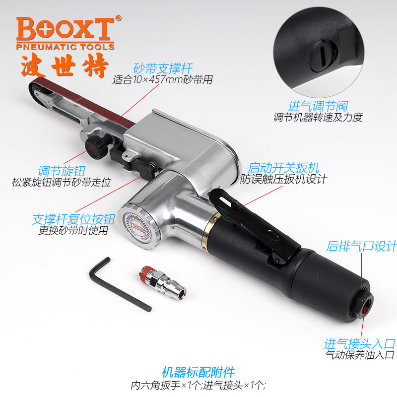 東莞市強勁五金工具有限公司提供臺灣BOOXT波世特品牌氣動工具,BX-15304VB弧形打磨氣動砂帶機廠家直銷,首件享特價。服務熱線:4008301980