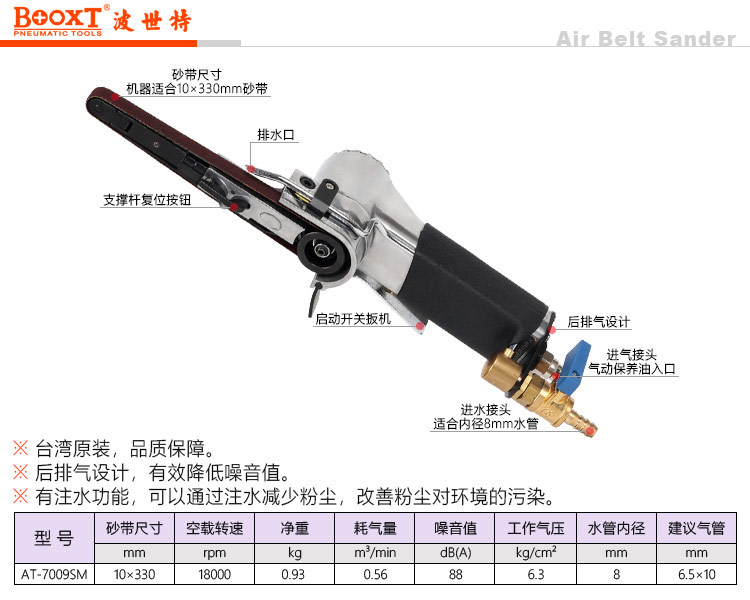 東莞市強(qiáng)勁五金工具有限公司提供臺灣BOOXT波世特品牌氣動工具,AT-7009SM注水式氣動砂帶機(jī)廠家直銷,首件享特價。服務(wù)熱線:4008301980