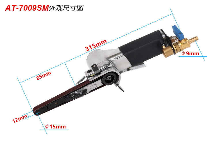 • 產(chǎn)品參數(shù): 砂帶尺寸:10×330mm; 空載轉(zhuǎn)速:18000rpm; 工具長度:315mm; 工具重量:0.93kg; 耗 氣 量:0.56m3/min; 噪 音 值:88db(A) 使用工作氣壓:0.65Mpa; 推薦使用內(nèi)徑8mm氣管; 平時使用應(yīng)多加氣動油保養(yǎng)。 【工業(yè)型/水磨】