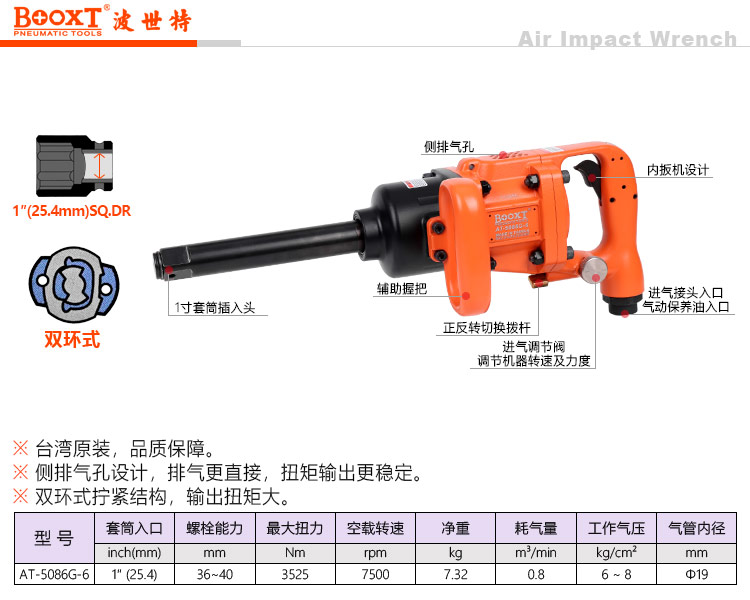 東莞市強(qiáng)勁五金工具有限公司提供臺(tái)灣BOOXT波世特品牌氣動(dòng)工具,工業(yè)級(jí)氣動(dòng)風(fēng)炮AT-5086G-6廠家直銷,首件享特價(jià)。咨詢熱線:4008301980