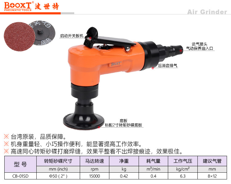 東莞強(qiáng)勁五金工具有限公司提供臺(tái)灣BOOXT波世特氣動(dòng)工具,氣動(dòng)砂碟打磨機(jī)CB-01SD廠家直銷,首件享特價(jià)。咨詢熱線:4008301980