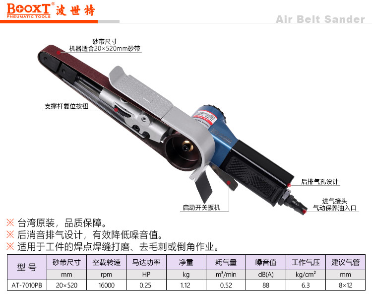 東莞市強勁五金工具有限公司提供臺灣BOOXT波世特品牌氣動工具,AT-7010PB工業(yè)用氣動砂帶機廠家直銷,首件享特價。服務(wù)熱線:4008301980