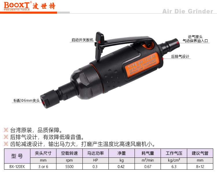 東莞市強(qiáng)勁五金工具有限公司提供臺(tái)灣BOOXT波世特品牌氣動(dòng)工具,低速風(fēng)磨機(jī)BX-120EK廠家直銷,首件享特價(jià)。咨詢熱線:4008301980
