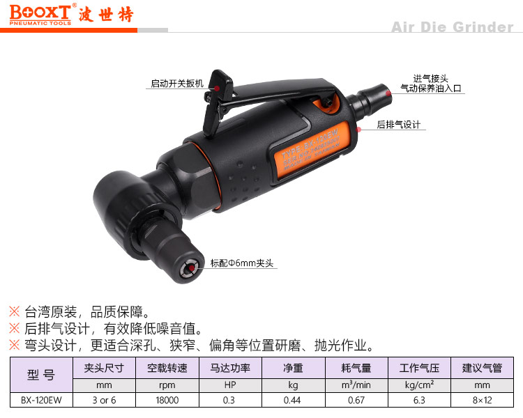 東莞市強勁五金工具有限公司提供臺灣BOOXT波世特品牌氣動工具,超短彎頭風(fēng)磨機BX-120EW廠家直銷,首件享特價。咨詢熱線:4008301980