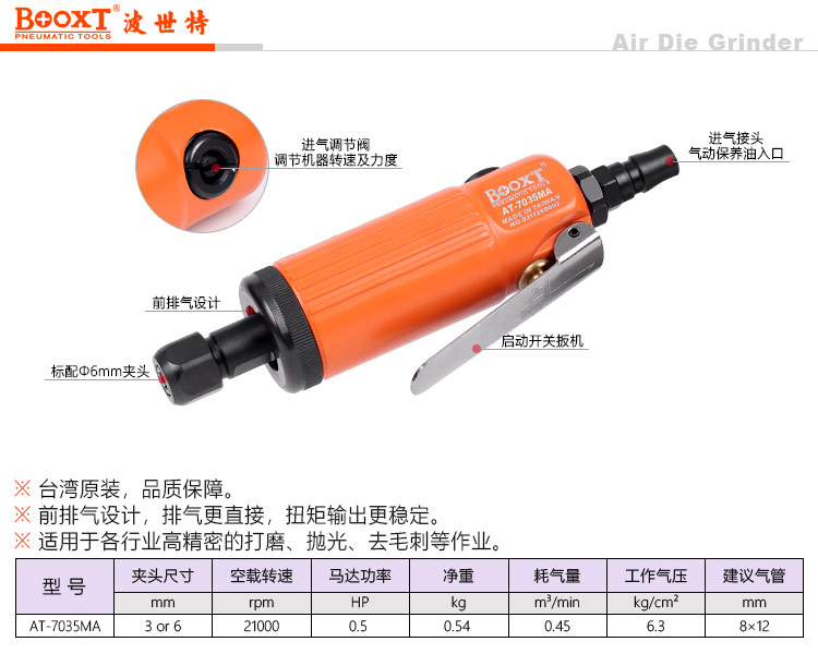 東莞市強勁五金工具有限公司提供臺灣BOOXT波世特品牌氣動工具,前排氣風(fēng)磨機AT-7035MA廠家直銷,首件享特價。咨詢熱線:4008301980